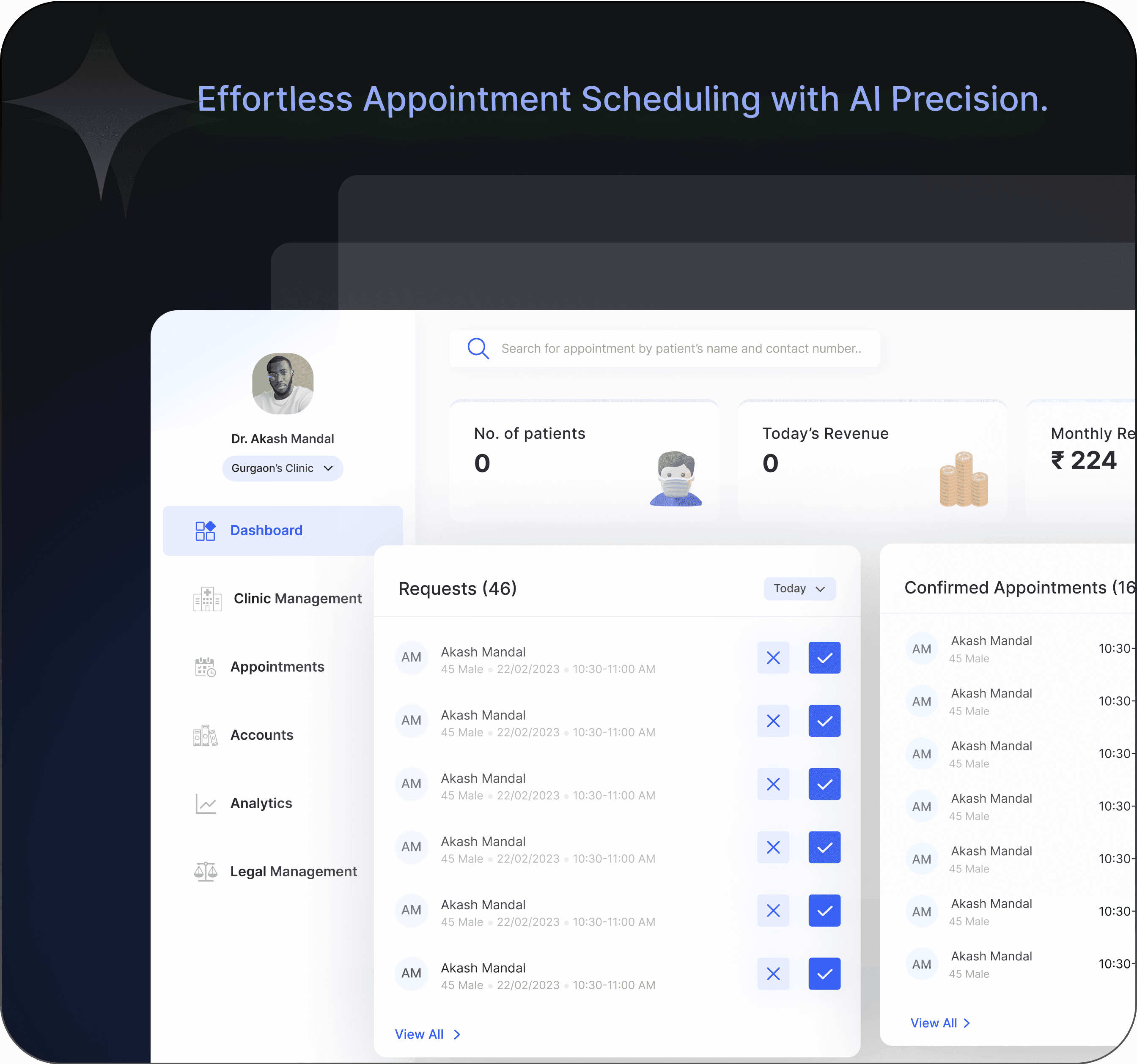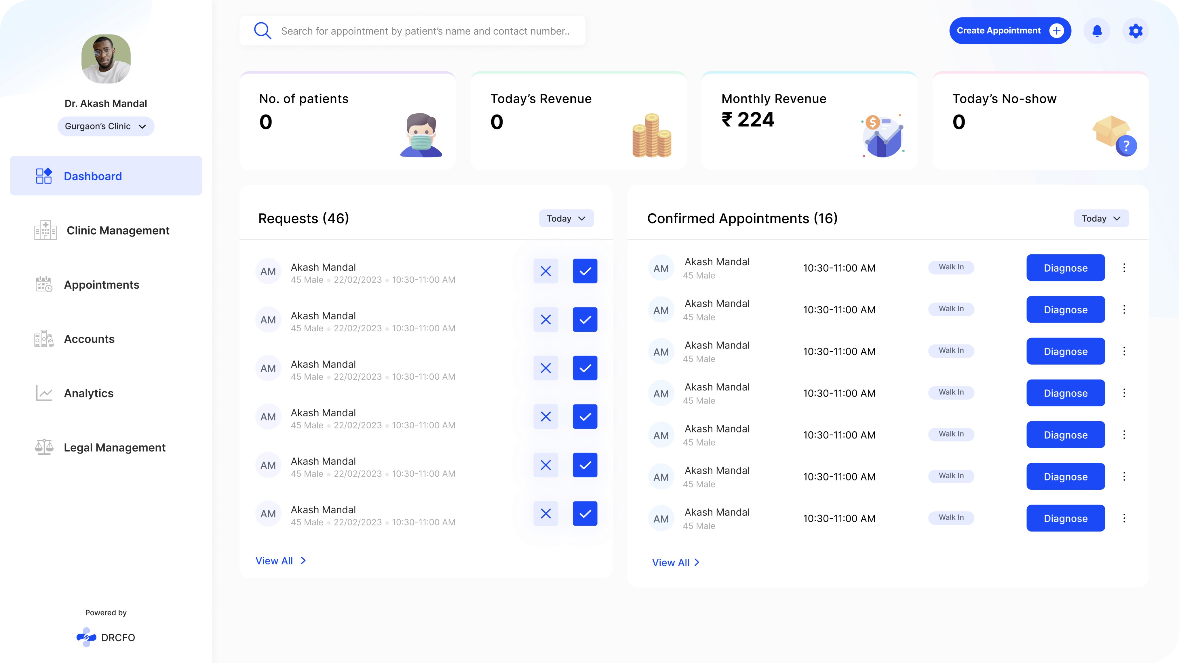 One of the primary challenges DRCFO faced was the inefficient scheduling process. GrowHut developed a flexible dashboard that allows doctors to manually create appointments or accept requests directly from patients, streamlining the entire booking process.