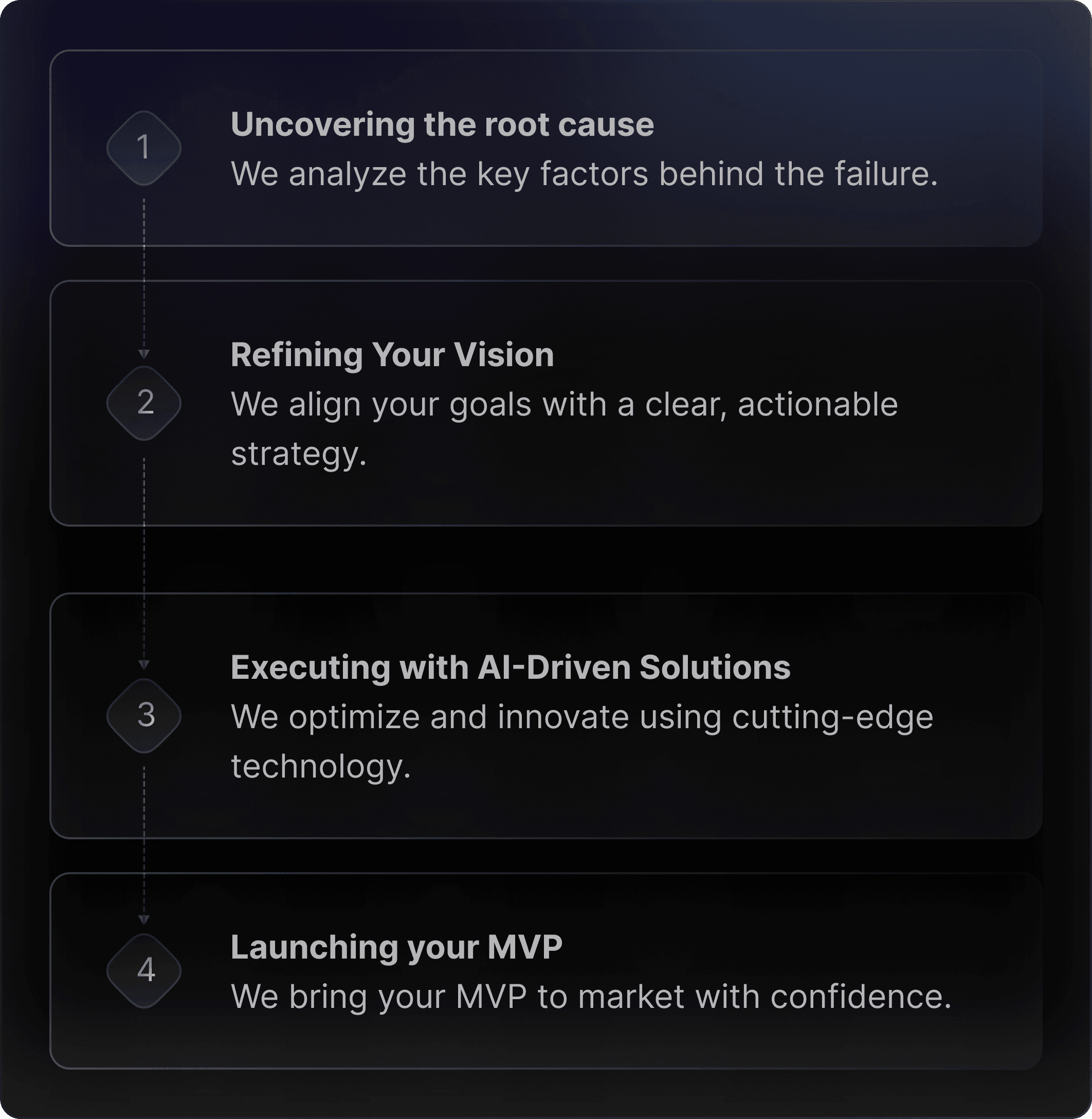 We understand how it feels when your product doesn’t meet expectations—it's disheartening, and we’ve been there too. At GrowHut, we help you pivot, identify key issues, and rebuild your MVP with a clearer vision. Our team will refine your product and get it ready for user validation, turning setbacks into fresh opportunities for growth.