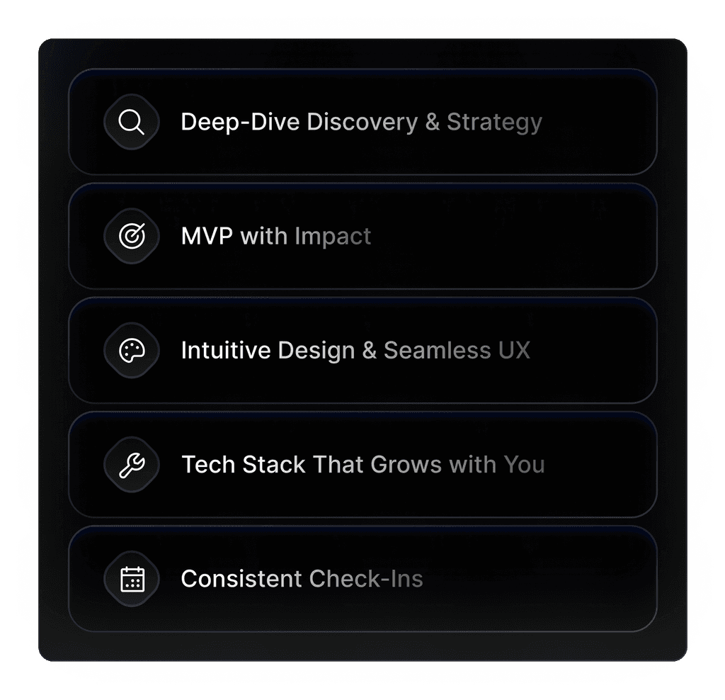With personalized guidance, we ensure your MVP is focused, lean, and designed to thrive in the long run.